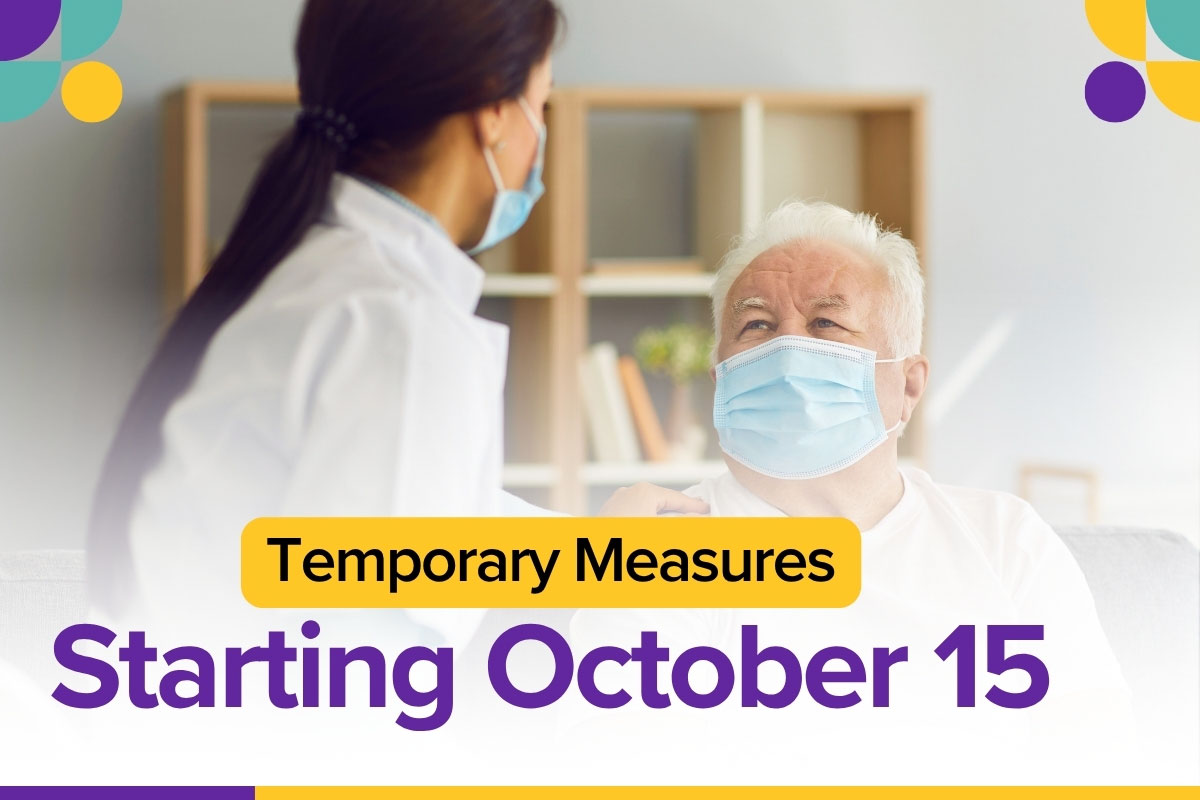 Starting October 15, our staff will wear masks during point of care interactions - any time they are within close distance of a client or resident. This is one of the ways we protect our clients and residents, especially those most vulnerable to respiratory illnesses.